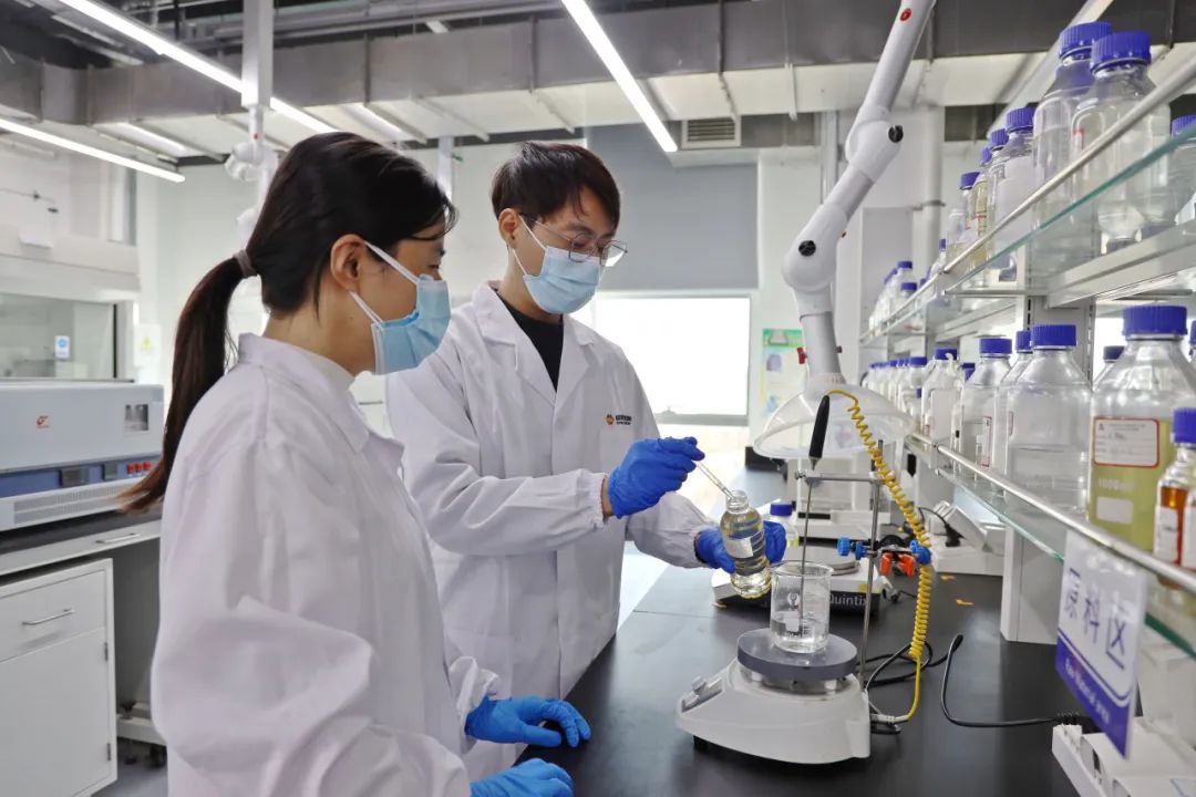 寧夏煤業(yè)煤化工研究院研發(fā)員進(jìn)行高端潤滑油調(diào)和實(shí)驗(yàn)。