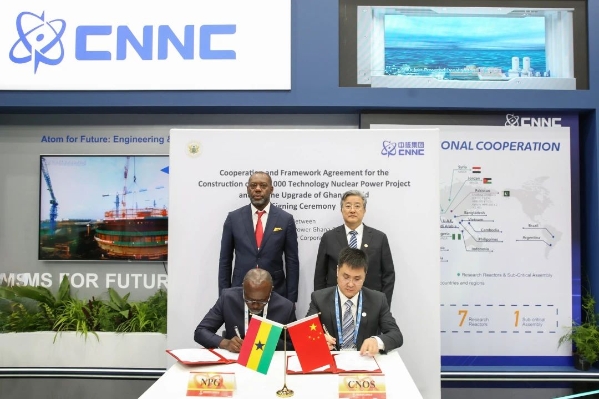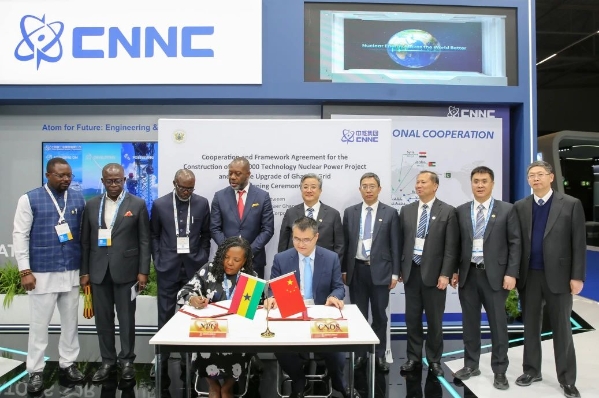 IAEA總干事拉斐爾·格羅西,世界能源理事會(huì)CEO安吉拉,WNA總干事薩瑪·萊昂,加納能源部長馬修·普倫佩,馬拉維能源部長易卜拉欣·馬托拉,法國原委會(huì)副主席皮凱蒂,加拿大核協(xié)會(huì)主席約翰·戈?duì)柭▏娏径麻L呂克·雷蒙,國家能源局總經(jīng)濟(jì)師魯俊嶺、科技部中國國際核聚變能源計(jì)劃執(zhí)行中心副主任王敏、中國電力聯(lián)合會(huì)理事長辛保安等中外領(lǐng)導(dǎo)嘉賓參觀了展臺(tái)。展會(huì)期間,中核集團(tuán)與加納能源部、法國電力集團(tuán)等重要合作伙伴進(jìn)行了雙邊會(huì)談。中國中原與加納核電公司簽署了核電項(xiàng)目合作框架協(xié)議。