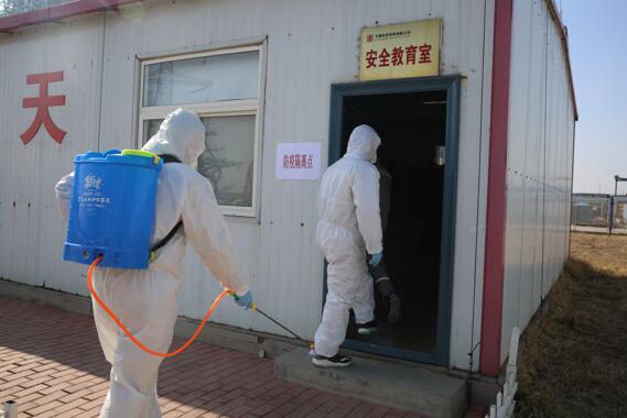 值班人員每日測量施工人員體溫(作者:柴穎)