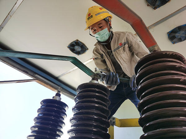 工作人員回裝變壓器高壓側(cè)電纜
