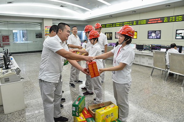 炎炎烈日下,對(duì)戶外作業(yè)的員工來說是個(gè)嚴(yán)峻的考驗(yàn),志愿者們來到接卸煤現(xiàn)場(chǎng)、集控室、檢修現(xiàn)場(chǎng)等工作場(chǎng)所,為一線工作人員送上了西瓜、涼茶等清涼物品,并叮囑他們既要做好安全生產(chǎn)工作,更要注意防暑降溫,在烈日下工作要做好防護(hù)措施,多喝水,合理休息,防止中暑。聲聲的叮囑和問候,使堅(jiān)守在高溫下工作的員工倍感絲絲清涼,也給他們帶來了精神關(guān)懷和工作動(dòng)力。