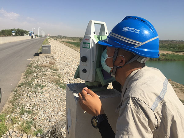 工作人員現(xiàn)場(chǎng)開(kāi)展大壩觀測(cè)工作
