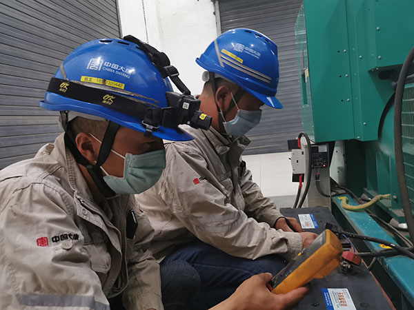 工作人員測(cè)量柴油發(fā)電機(jī)蓄電池電壓