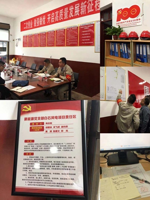 面對(duì)項(xiàng)目工期緊張、施工范圍廣、運(yùn)輸難度大等各種困難,風(fēng)電項(xiàng)目部團(tuán)隊(duì)始終堅(jiān)守在他們的“戰(zhàn)場(chǎng)上”,爭(zhēng)分奪秒向投產(chǎn)并網(wǎng)的目標(biāo)前進(jìn)。關(guān)鍵時(shí)刻,黨員干部沖鋒在前。風(fēng)電項(xiàng)目部有職工13人,黨員8人,黨員占比65.7%。按照公司黨委統(tǒng)一部署,積極開展黨建進(jìn)項(xiàng)目工作,成立了白石風(fēng)電責(zé)任區(qū),黨員干部亮身份、亮職責(zé)、亮承諾,積極投入到“黨員爭(zhēng)先樹標(biāo)桿、黨群協(xié)同創(chuàng)一流”項(xiàng)目攻關(guān)和“創(chuàng)崗建區(qū)”活動(dòng)中來,對(duì)工作中的重點(diǎn)、難點(diǎn)問題,黨員干部帶頭攻關(guān),形成月度成效表,取得了項(xiàng)目前期工作八大專題技術(shù)報(bào)告并批復(fù);定期組織安全學(xué)習(xí),安排專人負(fù)責(zé)巡視,及時(shí)發(fā)現(xiàn)項(xiàng)目工程安全隱患;解決了風(fēng)電項(xiàng)目使用林地批復(fù)獲取滯后及項(xiàng)目現(xiàn)場(chǎng)施工等系列問題。