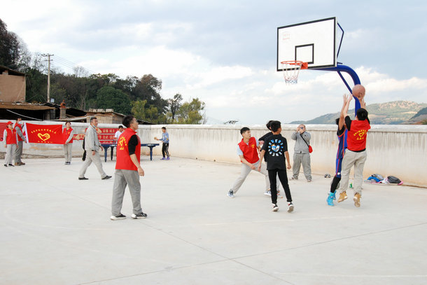 活動當天,村民活動室人頭攢動,身穿紅馬甲的志愿者向村民發(fā)放防范電信詐騙、疫情防控知識宣傳手冊;開展黨的十九屆六中全會精神宣講,創(chuàng)文、愛國衛(wèi)生知識問答;走訪慰問70歲以上的老人,并為村民送上了該公司書法協(xié)會會員書寫的新春祝“福”,以及一批文體用品?;@球場上、乒乓球桌前,吸引了眾多老勒村民前來觀看和吶喊助威,友誼賽豐富村民文化生活,增進民族團結情。