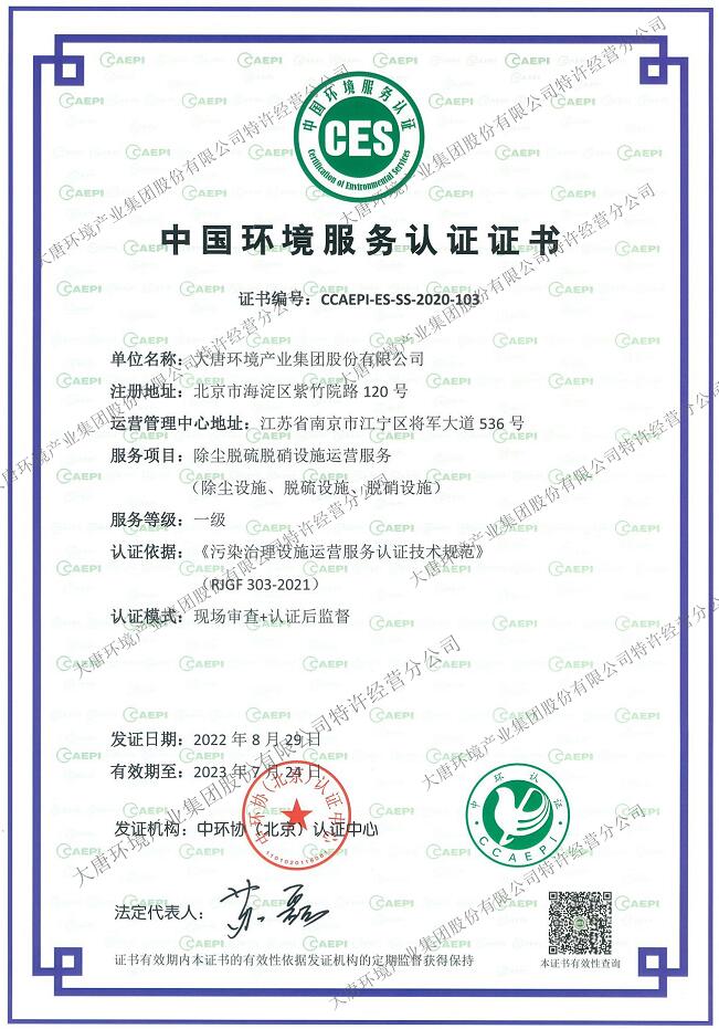 中國電力網(wǎng)訊 9月2日,特許經(jīng)營分公司獲得中環(huán)協(xié)(北京)認(rèn)證中心頒發(fā)的新版“除塵脫硫脫硝設(shè)施運營服務(wù)”一級服務(wù)認(rèn)證證書,圓滿完成中國環(huán)境服務(wù)認(rèn)證資質(zhì)督查工作。