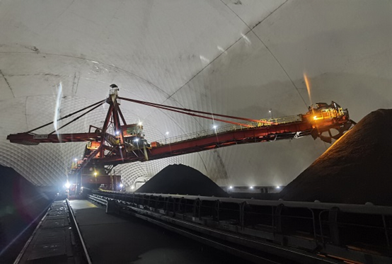 浙能樂清發(fā)電公司斗輪機通宵堆料提庫存。通訊員 孫超 攝