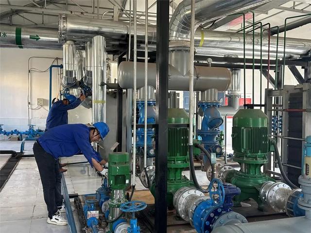 在城郊街道山城富雅苑小區(qū),內蒙古能源發(fā)電興安熱電有限公司的工作人員正在調試供暖設備、查驗管道閥門,并對小區(qū)內熱力管網(wǎng)進行注水試壓、開栓供熱,確保供熱設備安全運行。