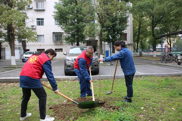 經(jīng)過一下午的辛勤勞動,25棵櫻花樹苗迎著春風(fēng),在石電小區(qū)的土地上“安家落戶”。最后,大家認(rèn)真在卡片上寫下“守護(hù)一片綠,留下一片美”“愛護(hù)環(huán)境,從我做起”等愛綠護(hù)綠宣傳標(biāo)語,給每棵小樹掛上了專屬標(biāo)簽。