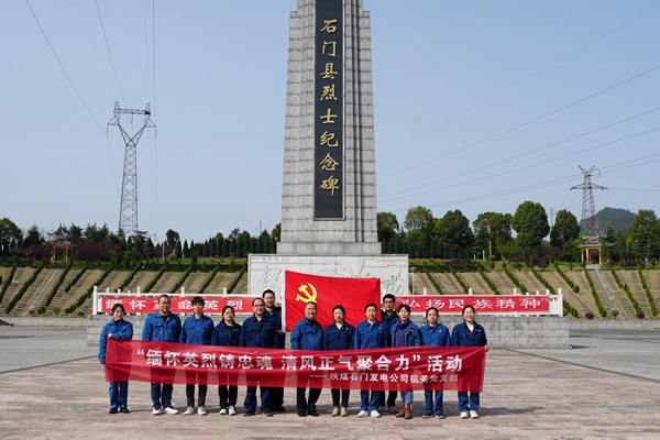 中國電力網(wǎng)訊 (通訊員:盧雅麗)清明時節(jié)寄哀思,豐碑永駐鑄忠魂。4月1日,陜煤石門發(fā)電公司機關(guān)黨支部組織全體黨員赴石門縣烈士陵園開展“緬懷英烈鑄忠魂 清風正氣聚合力”清明祭英烈活動,引導全體黨員銘記歷史,傳承紅色基因,凝聚奮進力量。
