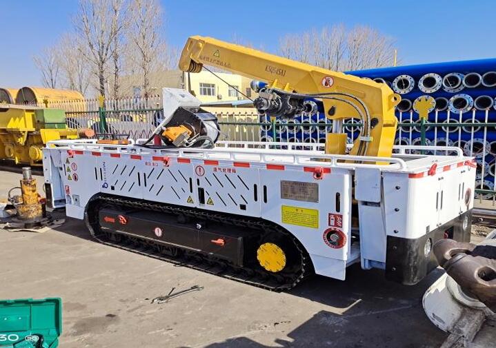 該運輸機器人由神東根據(jù)煤礦采掘工作面特點設(shè)計,主要用于采掘工作面倒運3噸以下材料或配件的運輸,外形尺寸3.5米×1.2米×1.1米,機動靈活,適合在狹窄處作業(yè)。整車柴油機驅(qū)動液壓泵,通過性強,穩(wěn)定性高。
