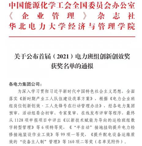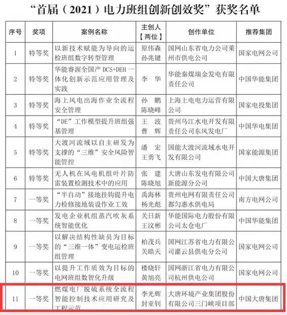 大唐環(huán)境特許經(jīng)營(yíng)分公司榮獲“首屆電力班組創(chuàng)新創(chuàng)效獎(jiǎng)”一等獎(jiǎng)