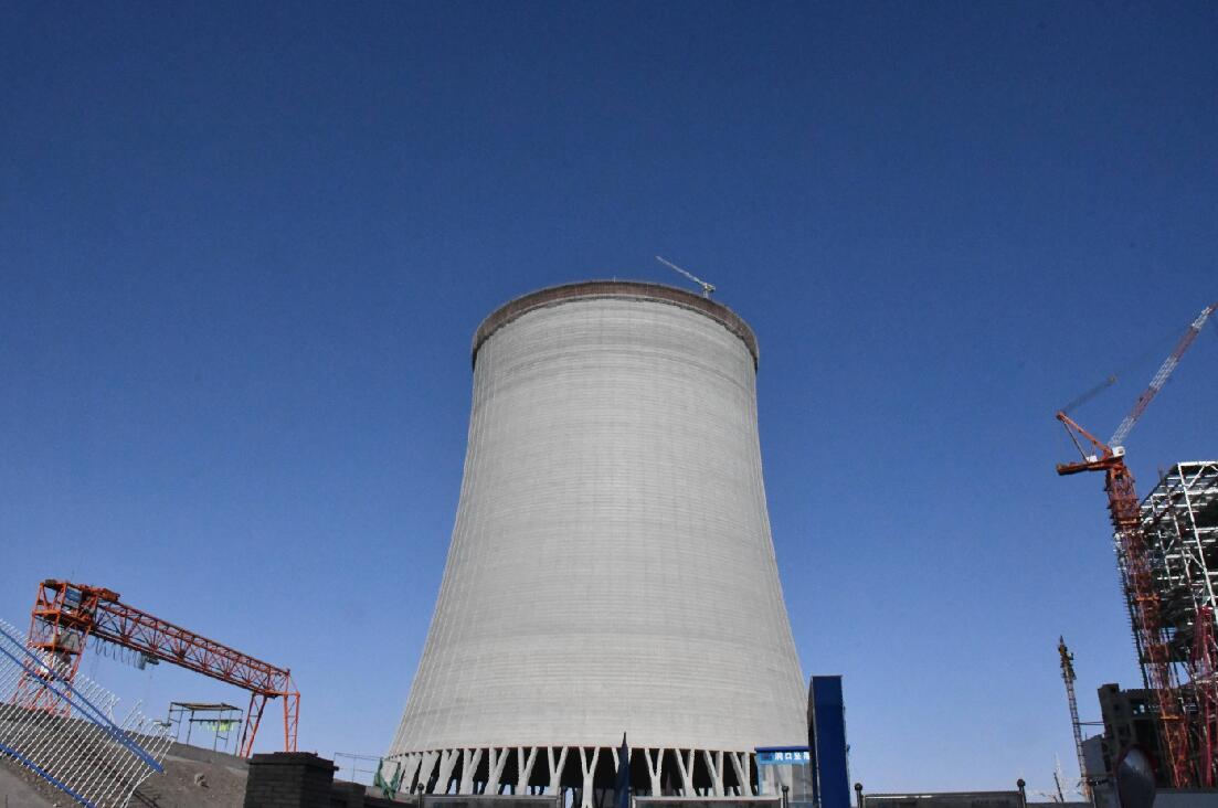 甘肅電投常樂(lè)電廠項(xiàng)目超大型自然通風(fēng)間接空冷冷卻塔設(shè)計(jì)屬?lài)?guó)內(nèi)一流。四號(hào)塔身零米直徑為163米,塔高215米,進(jìn)風(fēng)口高度29米,進(jìn)風(fēng)口直徑143.8米。由基礎(chǔ)、X柱、環(huán)梁、塔筒等部分組成,于2021年7月上旬開(kāi)工,X柱采用清水混凝土澆筑,整體澆筑共使用87753立方米混凝土,到頂后的間冷塔筒壁內(nèi)實(shí)外光、曲線(xiàn)流暢、模板接茬平整。塔筒為雙曲線(xiàn)形現(xiàn)澆鋼筋混凝土殼體結(jié)構(gòu),這種設(shè)計(jì)有效解決了瓜州縣大風(fēng)地區(qū)間冷塔設(shè)計(jì)和運(yùn)行等技術(shù)難題。