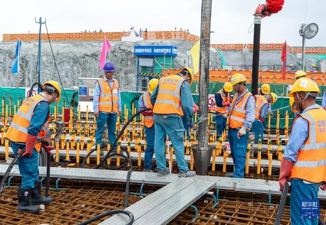 7月28日,施工人員在中廣核寧德核電站5號機組施工現(xiàn)場澆筑混凝土。新華社發(fā)(中廣核福建寧德核電有限公司供圖)