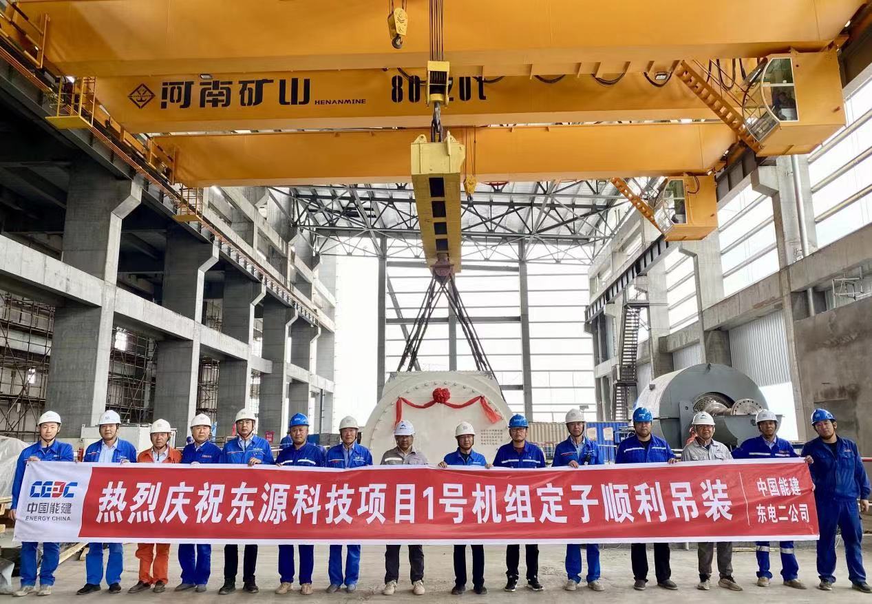近日,中國(guó)能建東電二公司承建的內(nèi)蒙古東源科技2×350兆瓦低熱值煤自備電廠項(xiàng)目1號(hào)機(jī)組發(fā)電機(jī)定子吊裝完成。