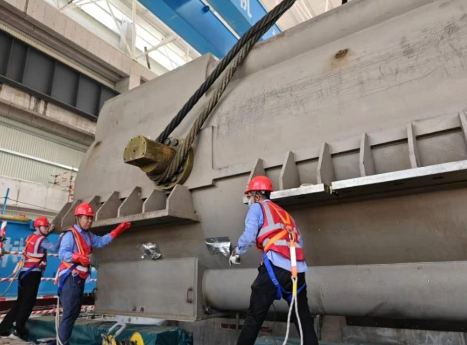 發(fā)電機(jī)定子作為主廠房?jī)?nèi)最重的單體設(shè)備,長(zhǎng)10.3米、寬4.868米、高4.7米,重達(dá)367噸。為確保發(fā)電機(jī)定子吊裝平穩(wěn)、就位精準(zhǔn),項(xiàng)目建設(shè)團(tuán)隊(duì)組織制定詳細(xì)的吊裝施工方案,提前做好設(shè)備和工器具保障,從場(chǎng)外運(yùn)輸至場(chǎng)內(nèi)卸車全過(guò)程反復(fù)推演,逐項(xiàng)落實(shí)。同時(shí),在吊裝期間實(shí)施全程監(jiān)督,嚴(yán)控安全質(zhì)量,確保整個(gè)吊裝過(guò)程安全、有序、可控。