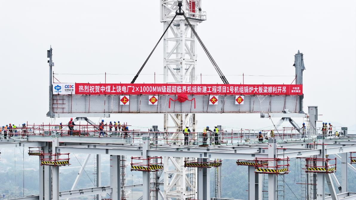 11月4日,中國能建建筑集團(tuán)承建的江西上饒發(fā)電廠2×1000兆瓦級(jí)超超臨界機(jī)組新建工程1號(hào)機(jī)組鍋爐大板梁開吊。