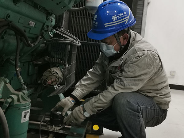 團(tuán)員青年對柴油發(fā)電機(jī)加熱器檢查