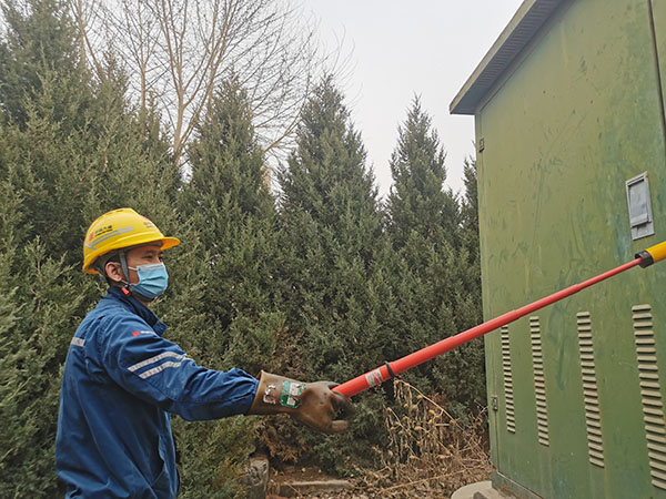 團(tuán)員青年對(duì)外引電源開關(guān)進(jìn)行驗(yàn)電