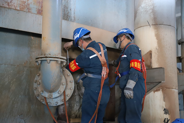 一個黨支部就是一座堡壘,一個黨員就是一面旗幟,疫情防控嚴(yán)峻形勢下,灰硫車間黨支部戰(zhàn)斗堡壘在助力安全生產(chǎn)中迸發(fā)出強大力量。3月16日1點40,吸收塔漿液漏泄,影響脫硫系統(tǒng)安全運行,存在環(huán)保參數(shù)超標(biāo)風(fēng)險,轉(zhuǎn)機班在接到缺陷后,立即組織全員上陣,黨員廖振海,李亞洲、楊得志在檢修中率先垂范,爭做表率,全身上下被漿液淋濕浸透也絕不后退半步,利用自制的木頭塞經(jīng)過5次嘗試臨時封堵住漏點,并用6mm鐵板自行焊接制作密封盒,內(nèi)部澆灌水泥,徹底消除了漏泄的隱患,確保了環(huán)保設(shè)備安全運行?;伊蜍囬g在對灰場2號除灰管道巡視檢查中發(fā)現(xiàn)灰管道漏泄,為了避免發(fā)生環(huán)保事件,機械班迅速組織人員搶修。工作中,黨員王雷、吳侃,工作組成員夏延鵬沖鋒在前,進入到冰冷的水中用卡具封堵漏點,由于搶修及時避免了環(huán)保事件的發(fā)生,保證了我廠除灰渣系統(tǒng)安全可靠運行?;伊蜍囬g黨支部在特殊時期,積極響應(yīng)廠黨委的號召,嚴(yán)格執(zhí)行我廠各項工作部署,黨員帶頭沖鋒一線,堅決守住人身、設(shè)備、環(huán)保底線,體現(xiàn)“硬核”擔(dān)當(dāng),用行動展示基層黨支部昂揚向上的精神面貌。