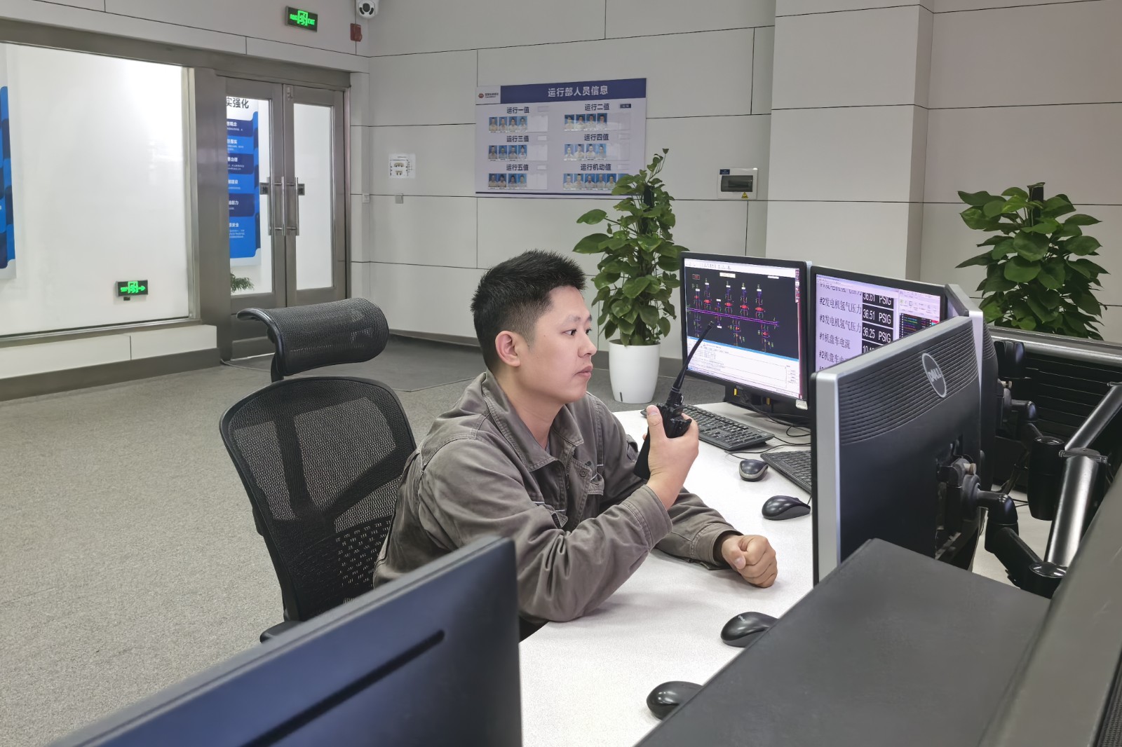 機組長周芝成快步走到控制臺前,屏幕上跳動的數(shù)字映在他的臉上。“一拖一啟動準備,3號機組準備啟動!”他向?qū)χv機下達指令,手指在鍵盤上快速準確地敲擊著。正在向著副值班員崗位沖擊的趙松濤緊盯著師傅的動作,筆記本上密密麻麻記著“燃機點火程序”“汽機沖轉(zhuǎn)參數(shù)”——這個2001年出生的東北小伙,第一次在遠離家鄉(xiāng)的集控室里感受到“年”的重量。