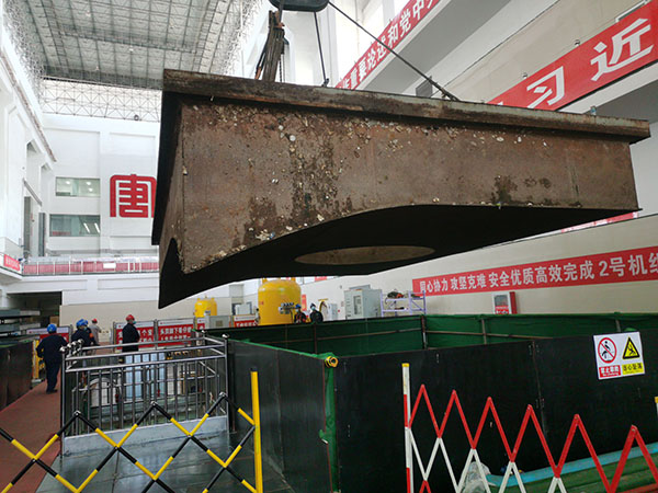 中國(guó)電力網(wǎng)訊 近日,內(nèi)蒙古大唐國(guó)際海勃灣水利樞紐開發(fā)有限公司在緊鑼密鼓地開展2號(hào)機(jī)組A級(jí)檢修工作,按照工期計(jì)劃安排,現(xiàn)場(chǎng)檢修工作有序推進(jìn),施工安全、進(jìn)度及質(zhì)量可控在控,開工一周內(nèi),流道蓋板已成功吊出。
