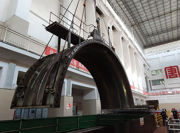該公司密切關(guān)注本次轉(zhuǎn)輪室吊裝作業(yè),2號機組轉(zhuǎn)輪室上半部重約16噸,為確保本次吊裝工作的順利進行,該公司根據(jù)現(xiàn)場情況,對參與本次吊裝工作的全體人員進行安全技術(shù)交底,所有工作人員清楚工作內(nèi)容、方法和要求。同時監(jiān)督吊裝作業(yè)各項措施全部落實到位,明確各項責任。在吊裝過程中,工作負責人和橋機指揮人員密切關(guān)注轉(zhuǎn)輪室擺動幅度,及時進行方位調(diào)整,各部位設(shè)專人負責,各環(huán)節(jié)做到無縫銜接,最終圓滿完成了2號機組轉(zhuǎn)輪室上半部吊裝工作。