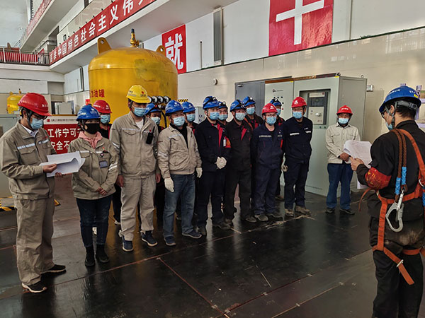拆除工作開始前,專業(yè)人員、檢修人員、監(jiān)理人員三方按照編制的專項(xiàng)吊裝方案認(rèn)真核對(duì)檢修措施,重點(diǎn)對(duì)主橋機(jī)供電系統(tǒng)、起升系統(tǒng)、吊具進(jìn)行檢查。同時(shí)組織工作負(fù)責(zé)人和工作班成員現(xiàn)場開展三講一落實(shí)活動(dòng),著重對(duì)本次吊裝作業(yè)過程中存在的風(fēng)險(xiǎn)點(diǎn)和預(yù)控措施進(jìn)行現(xiàn)場講解。燈泡頭拆除過程中,由于尺寸原因泡頭與定子基座把合螺栓松開后,未能按照預(yù)期直接放置到專用工具上。檢修指揮部現(xiàn)場研究方案,轉(zhuǎn)變思路,采用單側(cè)著力再逐步調(diào)整另一側(cè)的方案,把干涉區(qū)域盡量避開,整個(gè)拆除吊裝歷時(shí)5個(gè)小時(shí)順利完成。拆除吊運(yùn)期間,該公司各級(jí)人員到位監(jiān)督,有效保障了安全措施齊全可靠?,F(xiàn)場檢修人員充分發(fā)揚(yáng)團(tuán)結(jié)協(xié)作、不怕吃苦、奮勇拼搏的工作精神,本著精益求精的工作態(tài)度,嚴(yán)格執(zhí)行安全規(guī)程、檢修工藝和工序,確保了整個(gè)拆除工作萬無一失。