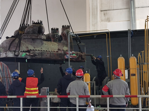 圖為2號(hào)機(jī)組正在進(jìn)行揭上缸