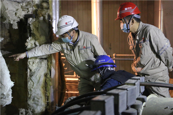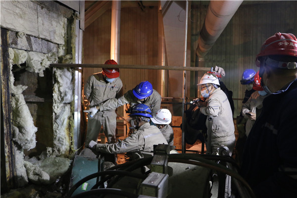 此次消缺期間室外最低氣溫達(dá)到零下20度左右,防寒防凍無(wú)疑是消缺工作的重中之重,長(zhǎng)山廠及時(shí)切換供熱方式,利用化廠備用熱源為家屬區(qū)供熱,同時(shí)也為防寒防凍工作、機(jī)組順利啟動(dòng)提供可靠保證。在此期間,各單位各負(fù)其責(zé),全員行動(dòng),全面開(kāi)展防寒防凍工作。發(fā)電部作為主體責(zé)任部門(mén),從主任到單元長(zhǎng),從值班員到巡檢員,明確區(qū)域,認(rèn)真排查,每小時(shí)測(cè)量廠房所有區(qū)域溫度,同時(shí)對(duì)門(mén)窗封閉、室外管路保溫等防寒防凍措施進(jìn)行再次確認(rèn);設(shè)備部一方面制定方案組織相關(guān)單位消缺,一方面全面安排部署極寒天氣下的防寒防凍工作;各車(chē)間(分場(chǎng))在生產(chǎn)廠房各層重要部位設(shè)置炭火爐,對(duì)熱控表管表計(jì)、電氣電子間盤(pán)柜、氨區(qū)管路進(jìn)行檢查,增加伴熱帶,設(shè)置值班人員監(jiān)測(cè)環(huán)境溫度,全力以赴確保防寒防凍工作萬(wàn)無(wú)一失。消缺期間,行政事務(wù)部積極做好后勤保障工作,按時(shí)準(zhǔn)備盒飯送到現(xiàn)場(chǎng),助力消缺工作順利完成。