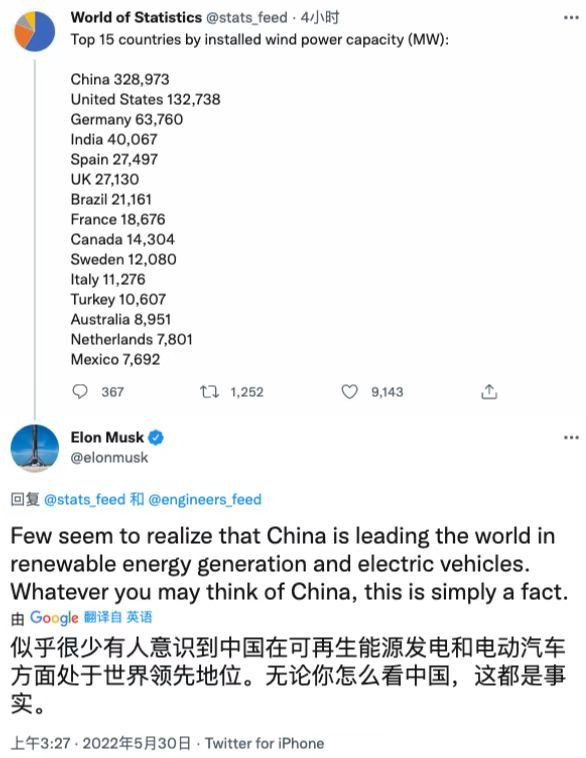 5月30日消息,特斯拉公司CEO埃隆·馬斯克回復網(wǎng)友時表示,似乎很少有人意識到中國在電動汽車和可再生能源發(fā)電方面領先世界,這是事實。