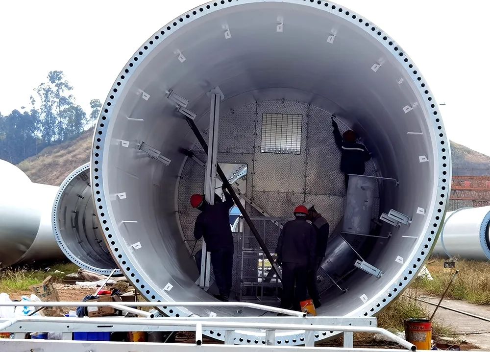 在云南藍天重工有限公司,工人們正在進行風(fēng)力發(fā)電機塔筒內(nèi)附件安裝。“我們今年新增了一條生產(chǎn)線,并于7月正式投產(chǎn),可滿足單段100噸塔筒生產(chǎn)要求。今年,除了華寧,我們還接到了曲靖、文山等地的訂單。”該公司技術(shù)副總經(jīng)理周鵬翔說,“現(xiàn)在全國風(fēng)電產(chǎn)業(yè)趨勢向好,帶來了良好的市場前景,也帶來了更大的市場競爭。接下來,我們將充分發(fā)揮公司生產(chǎn)規(guī)模大、輻射面積廣的優(yōu)勢,不斷提升產(chǎn)品競爭力,逐步擴大生產(chǎn)規(guī)模。”