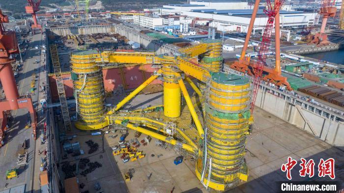 海油觀瀾號(hào)”平臺(tái)邊長(zhǎng)超80米,高約35米,重量近4000噸,風(fēng)機(jī)將安裝在中心立柱上?!《緞?攝