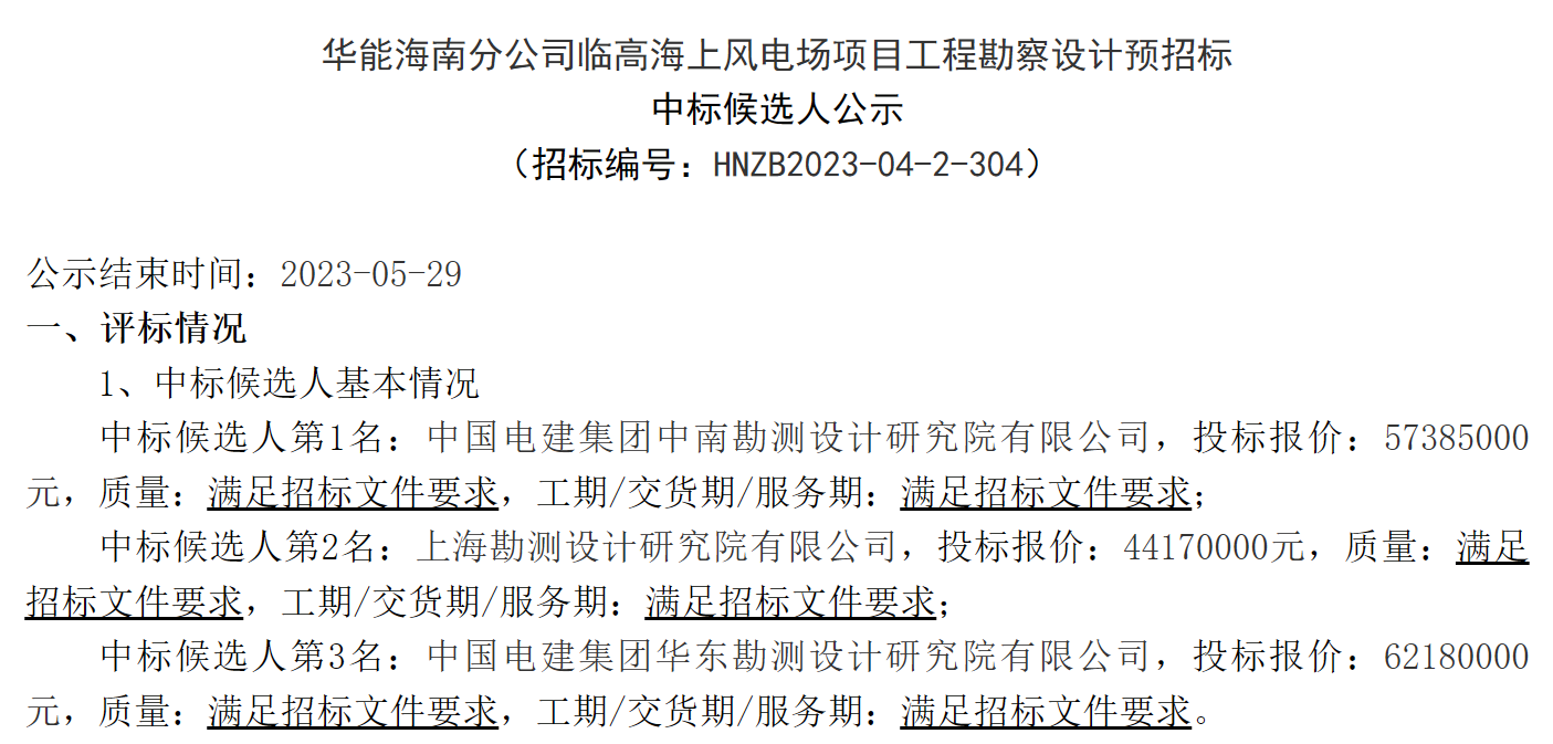 公告顯示,第一中標(biāo)候選人:中國電建集團(tuán)中南勘測(cè)設(shè)計(jì)研究院有限公司,投標(biāo)報(bào)價(jià):57385000元。第二中標(biāo)候選人:上海勘測(cè)設(shè)計(jì)研究院有限公司,投標(biāo)報(bào)價(jià):44170000元。第三中標(biāo)候選人:中國電建集團(tuán)華東勘測(cè)設(shè)計(jì)研究院有限公司,投標(biāo)報(bào)價(jià):62180000元。