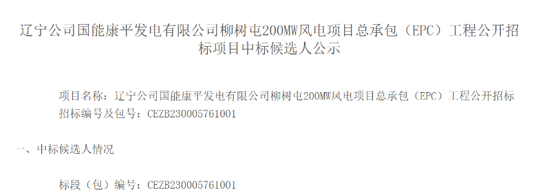 國(guó)能康平發(fā)電有限公司柳樹屯200MW風(fēng)電項(xiàng)目總裝機(jī)容量為200MW,安裝43臺(tái)單機(jī)容量為4550kW和1臺(tái)單機(jī)容量為4350kW的風(fēng)電機(jī)組,所選機(jī)型單位千瓦掃風(fēng)面積不低于6.2m2/kW,葉輪直徑不低于190m,輪轂高度140m,新建一座220kV升壓站。計(jì)劃工期:2023年7月31日-2024年6月30日