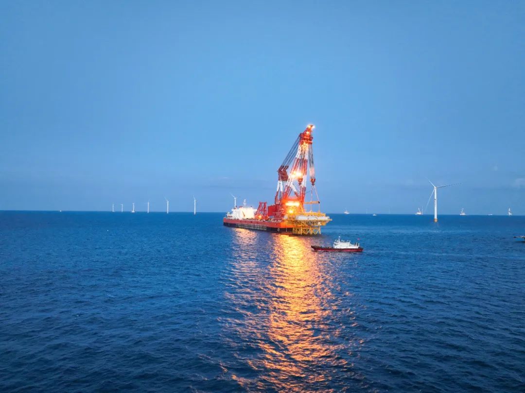 8月23日18時58分,國家電投山東能源投資建設(shè)的山東半島南U1場址海上風(fēng)電項(xiàng)目海上升壓站上部組塊與導(dǎo)管架精準(zhǔn)對接,標(biāo)志著國內(nèi)單體容量最大、集電線路電壓等級最高的模塊化預(yù)裝式海上升壓站吊裝順利完成。