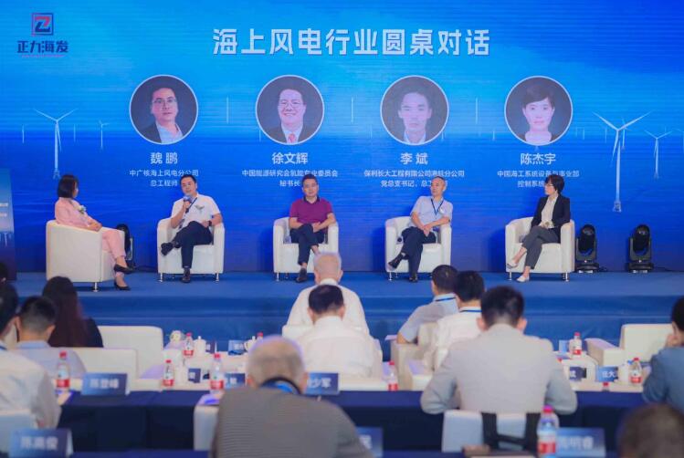 主旨演講后,由正力海發(fā)公司總裁高玲總主持,中廣核工程公司海上風電公司總工程師魏鵬、國能源研究會氫能專業(yè)委員會秘書長徐文輝、中保利長大工程有限公司港航分公司黨總支書記、總工程師李斌、中國海工系統(tǒng)設備與事業(yè)部控制系統(tǒng)專家陳杰宇4位嘉賓的圓桌對話,圍繞中國海風拓展國際市場的機遇和挑戰(zhàn)、海上風電制氫技術發(fā)展及未來展望、深水風電支腿船如何助力浮式風機建設、海工裝備國產化的思考四個方面進行深入探討,四位嘉賓專業(yè)見解和經驗,展現了海風市場、海上風電、海工建設、海工裝備在未來的發(fā)展中具有廣闊的前景和未來,海洋能源、海洋工程大有可為。