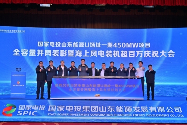 11月28日,國家電投山東能源U1場址一期450兆瓦海上風(fēng)電項目全容量并網(wǎng)表彰暨海上風(fēng)電裝機(jī)超百萬慶祝大會舉行。新黃河記者獲悉,國家電投山東能源有限公司“百萬千瓦級海上風(fēng)電基地”建成,這是國家電投在魯首個百萬千瓦級海上風(fēng)電基地。