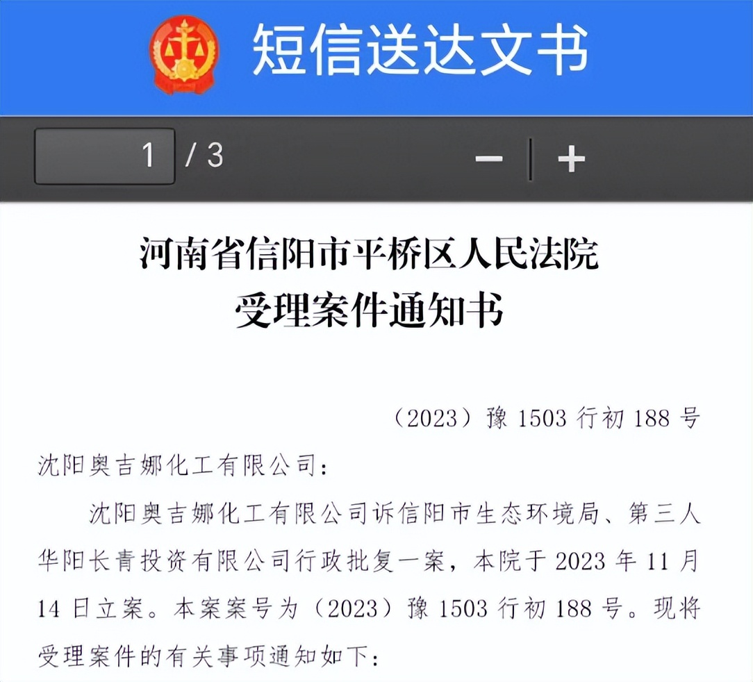 2023年12月1日,中國風(fēng)電潤滑油龍頭企業(yè)沈陽奧吉娜化工有限公司(下簡稱奧吉娜公司)收到河南省信陽市平橋區(qū)人民法院開庭傳票,奧吉娜公司訴信陽市生態(tài)環(huán)境局和第三人華陽長青投資有限公司行政訴訟案,將于2023年12月20日14時50分開庭審理。屆時,這起風(fēng)電潤滑油央企招投標(biāo)“民告官”第一案結(jié)果如何,讓我們拭目以待。
