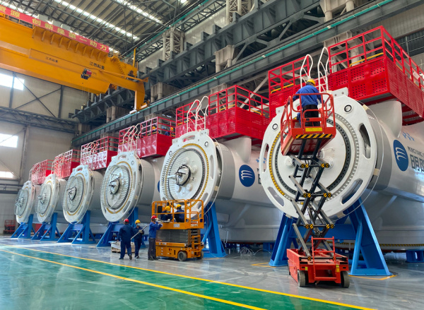 明陽智能海上風電產(chǎn)業(yè)園內(nèi)設備高效運轉(zhuǎn)、操作者各司其職 陳坂升 攝