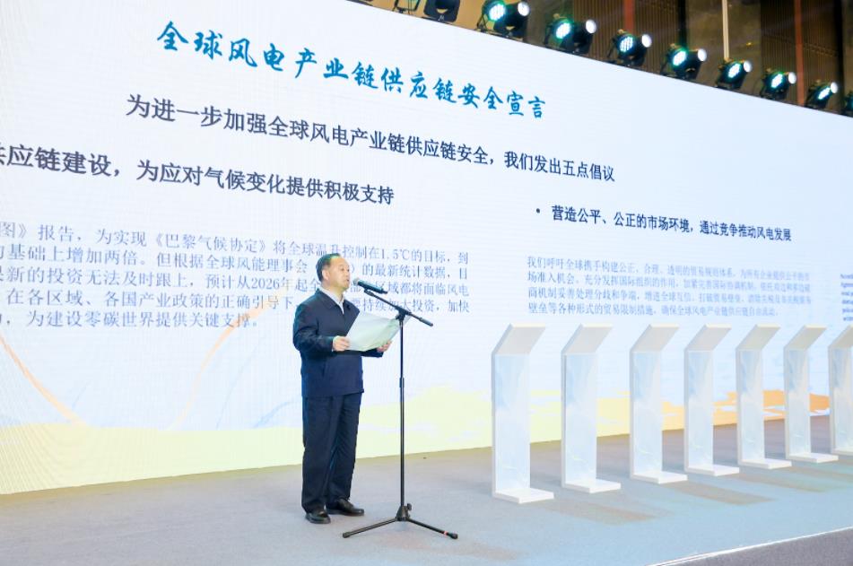 中國職工技術(shù)協(xié)會副理事長、電力專委會名譽(yù)會長畢亞雄,代表全體嘉賓莊嚴(yán)宣讀了《全球風(fēng)電產(chǎn)業(yè)鏈供應(yīng)鏈安全宣言》。