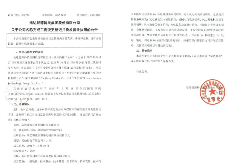此次由“風(fēng)電”更名為“能源科技”,不僅標(biāo)志著運(yùn)達(dá)股份立志在國家“30·60”碳達(dá)峰、碳中和戰(zhàn)略引領(lǐng)下,圍繞新能源和智能電網(wǎng)、儲(chǔ)能、光伏、制氫及綜合能源開發(fā),積極打造以新能源和碳排放管理為主的現(xiàn)代化一流新能源企業(yè);同時(shí),也彰顯出運(yùn)達(dá)股份作為一家以技術(shù)見長的企業(yè),未來將持續(xù)探索科技創(chuàng)新,積極關(guān)注新興技術(shù)的發(fā)展、注重長期的技術(shù)沉淀與積累,為國家構(gòu)建新型電力系統(tǒng)和新型能源體系提供有力支撐,為實(shí)現(xiàn)雙碳目標(biāo)和全球氣候治理做出積極貢獻(xiàn)。