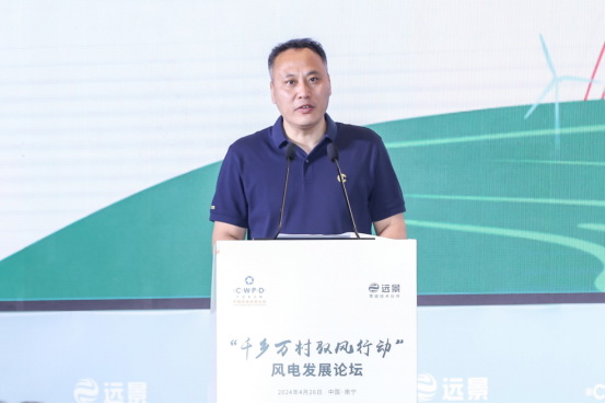 開幕式上,國家能源局新能源和可再生能源司處長陳永勝,廣西壯族自治區(qū)發(fā)展改革委員會黨組成員,自治區(qū)能源局黨組書記、局長熊祥忠,遠景集團高級副總裁田慶軍,中國可再生能源學(xué)會風(fēng)能專業(yè)委員會秘書長秦海巖分別致辭。