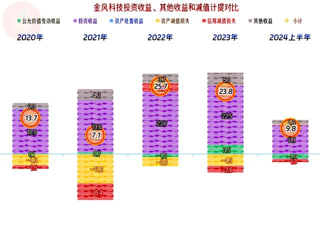 在其他收益方面有很大的影響,因?yàn)榻痫L(fēng)科技這方面的金額相當(dāng)大,特別是2022年和2023年成為其盈利的主要構(gòu)成部分。雖然政府補(bǔ)助的金額并不低,但主要的收益項(xiàng)目還是“投資收益”,除了“權(quán)益法核算的長(zhǎng)期股權(quán)投資收益”之外,還有金額也很大的“處置子公司產(chǎn)生的投資收益”和“因喪失重大影響或處置聯(lián)合營(yíng)公司取得的投資收益”。