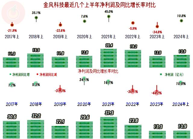 凈利潤(rùn)的波動(dòng)就更大一些了,但年度和半年度的峰值都是2021年創(chuàng)下的,這比營(yíng)收峰值晚了一年。2024年雖然有同比10.8%的增長(zhǎng),但這是在連續(xù)兩年下跌基礎(chǔ)上的反彈,離峰值年份還有較大的距離。