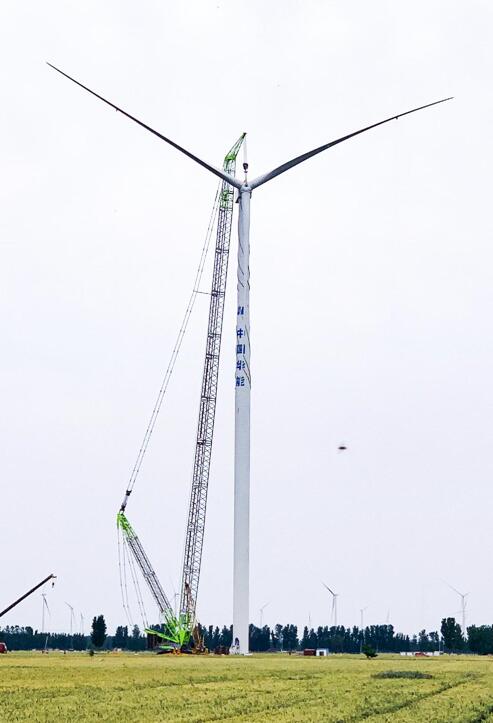 5月24日下午,隨著河南濮陽風(fēng)電場3號風(fēng)機(jī)葉輪組件吊裝就位,標(biāo)志著由中國能建浙江火電承擔(dān)安裝的濮陽500兆瓦風(fēng)電工程東北片區(qū)和西北片區(qū)共66臺風(fēng)機(jī)全部吊裝完成。