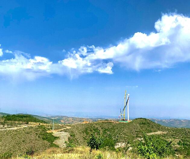 槐花香時麗日晴,風(fēng)起平定山光新。6月6日,由中國能建投資建設(shè)、山西院總承包、山西電建承建的山西平定100兆瓦風(fēng)電項目順首臺風(fēng)機(jī)吊裝任務(wù)完成。這是一次非同尋常的吊裝。平定風(fēng)電項目建設(shè)容量100兆瓦,安裝40臺海裝2.5兆瓦風(fēng)機(jī),機(jī)位大多分布在風(fēng)場各獨立山頭上,施工區(qū)域海拔高、范圍廣、吊裝難度大。