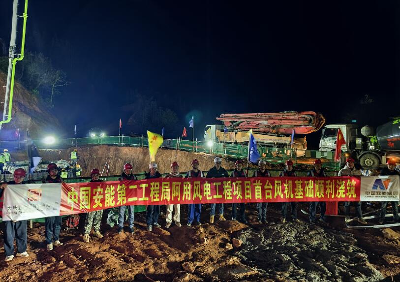 云南阿用風電項目首臺風機基礎順利澆筑完成