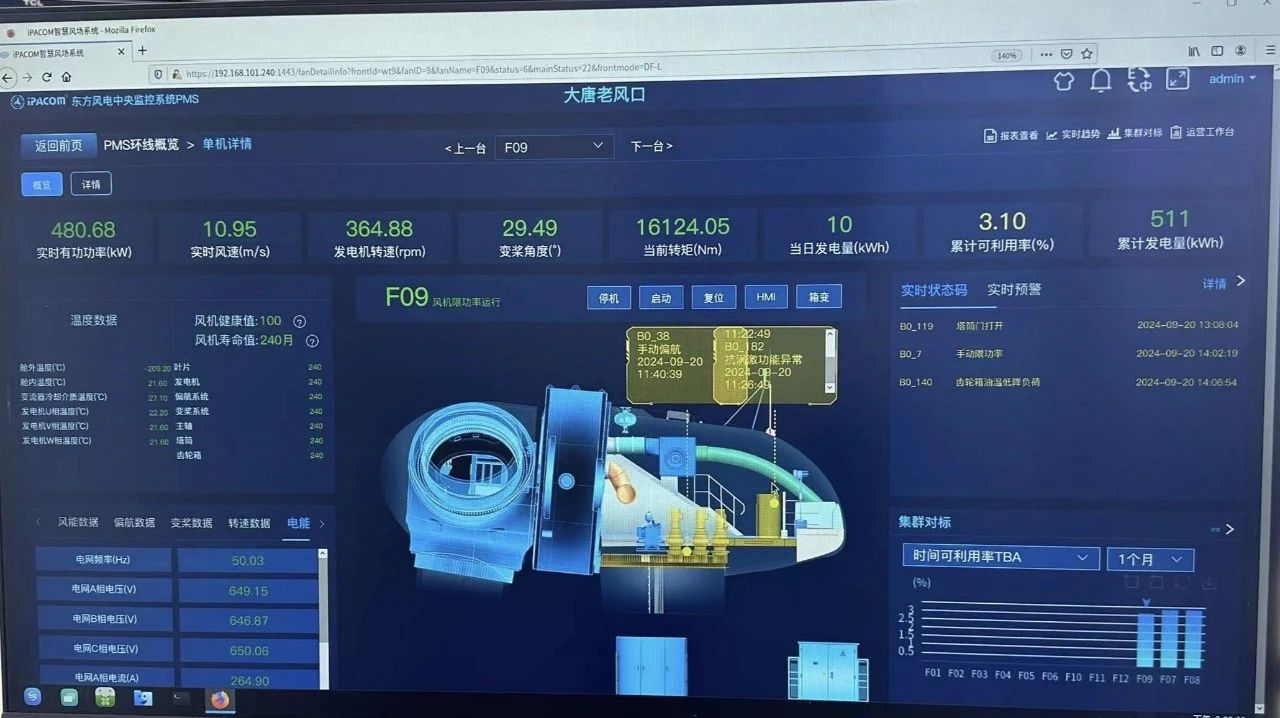 2024年9月20日14時18分,隨著現(xiàn)場總指揮一聲“啟動”指令下達,大唐塔城老風口項目9號風機徐徐轉(zhuǎn)動中控室并網(wǎng)。