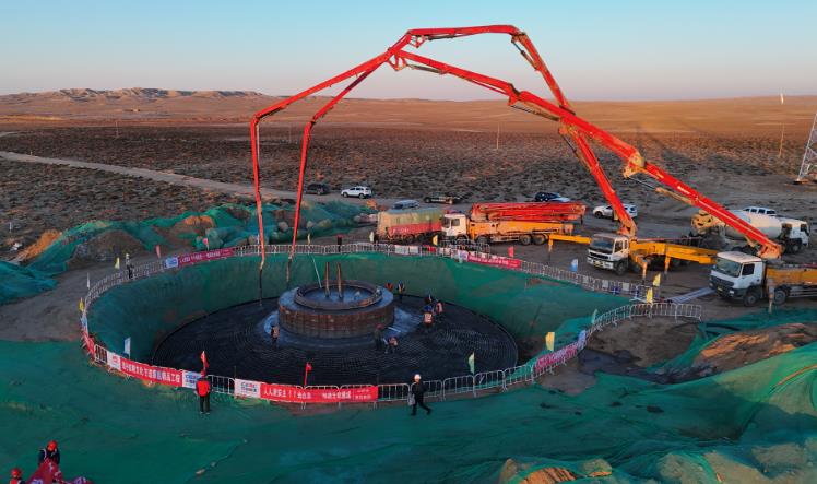 10月22日,中國能建建筑集團(tuán)承建的內(nèi)蒙古能源烏拉特后旗1000兆瓦風(fēng)電項目風(fēng)機(jī)基礎(chǔ)全部澆筑完成。
